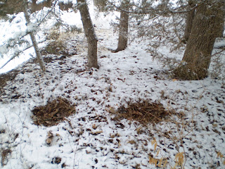 | where either a bobcats or a coyotes bedded down last night the prints in the pic above led away from this spot |